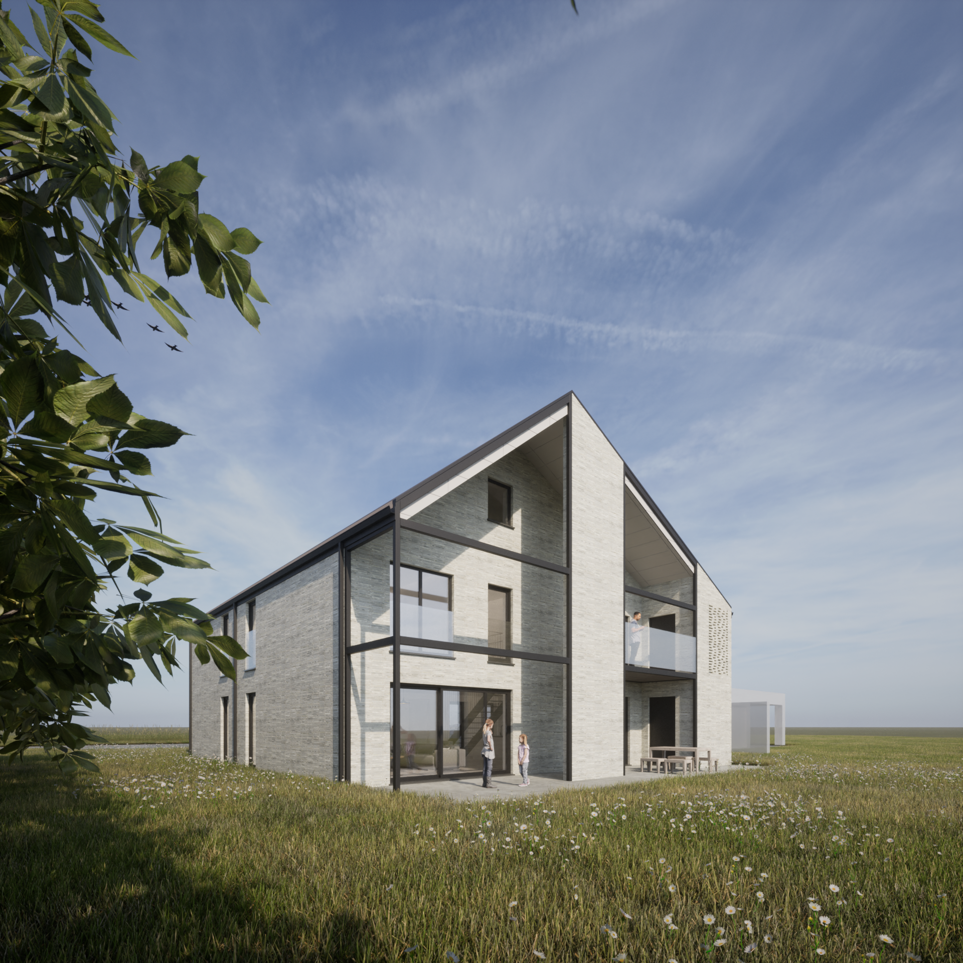 Gesitueerd op een diep perceel met een prachtig zicht op het achterliggende open landschap wordt een woning gerealiseerd die in dialoog gaat met de omgeving en de unieke kwaliteiten van deze site verder versterkt.